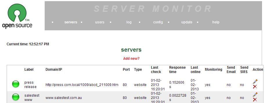 - update - which switches based on server type service or website to get the server status. It will recall itself recursively - to max runs to retry a connetion attempt.